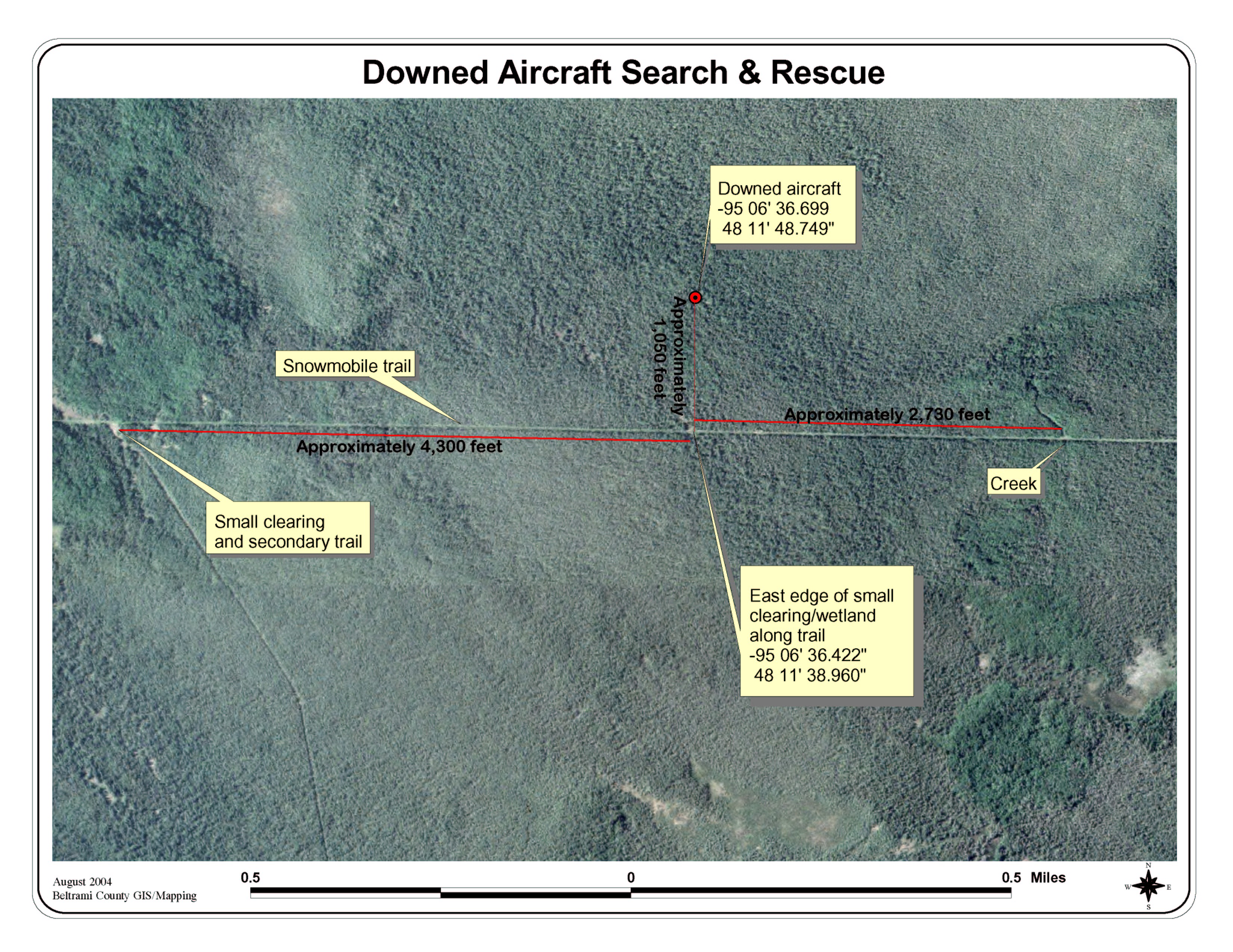 team pinpointed the location on the photos and evaluated the terrain around that site. Finding a recognizable location along a snowmobile trail, they got a