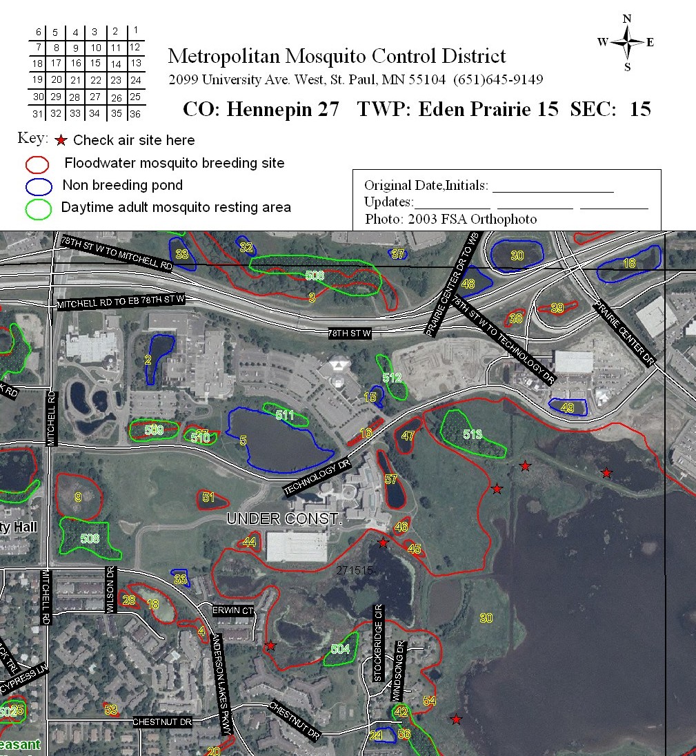 to control mosquitoes, including those that may carry West Nile virus and LaCrosse encephalitis. Field staff locate wetlands