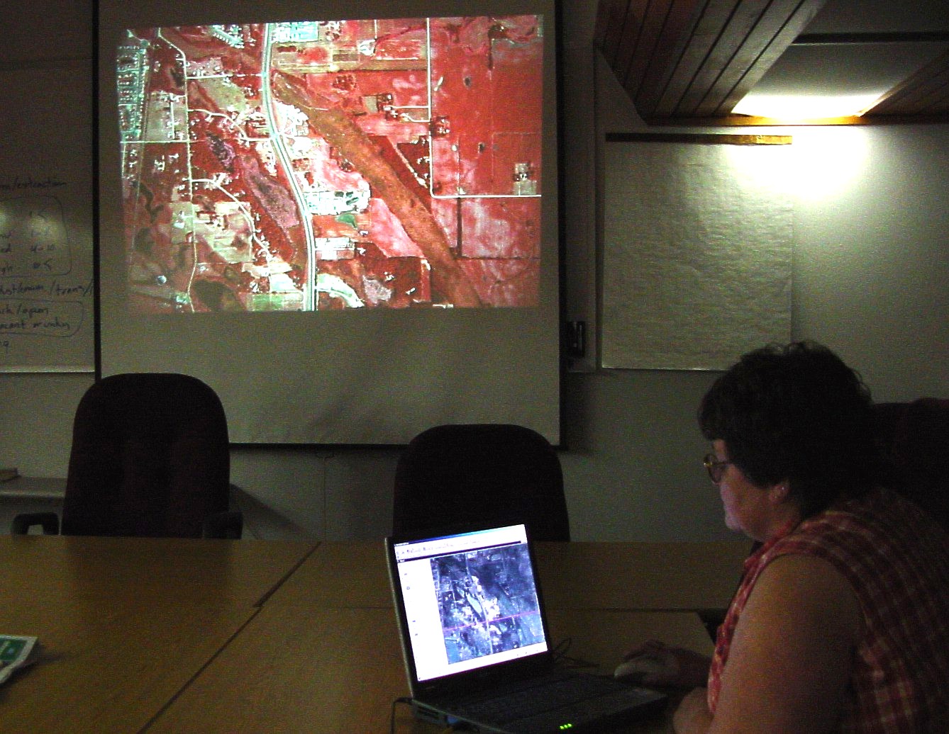 color-infrared slides are projected on a movie screen at the largest possible