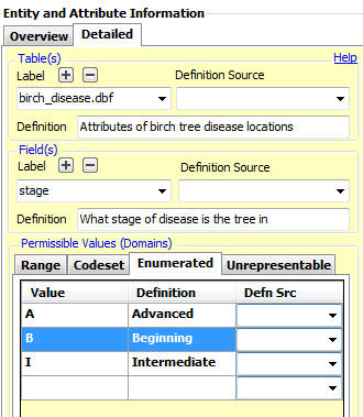 On the Entity and Attribute Information Section, Detailed Tab: