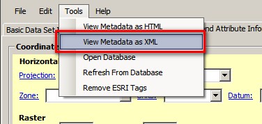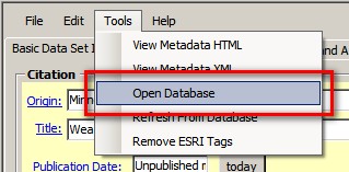 This feature allows users to open and edit the Minnesota Metadata Editor Microsoft Access database (metadata.mdb). The use of this feature requires that the user have Microsoft Access installed locally.