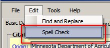 This feature will launch a spell-checking utility to verify the spelling of information within the current tab. If spelling errors are found within the selected tab, a new window will open and allow the user to modify the unknown word(s) if needed.